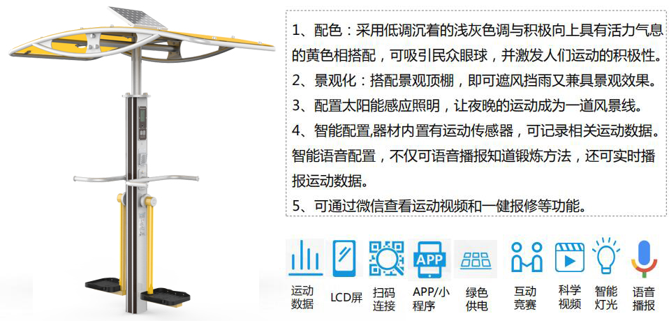 好博全民健身产品涵盖健身路径、运动场馆、篮乒气羽排等产品,分为多个系列,先进的制造工艺、严苛的质量检测,确保产品性能优良、品质安全可靠,让运动简单科学。并将全民健身器材(户外路径器材、体育场馆等产品)进行智能化升级和互联,实现全人群覆盖、全场景智能,让运动赞美生活。