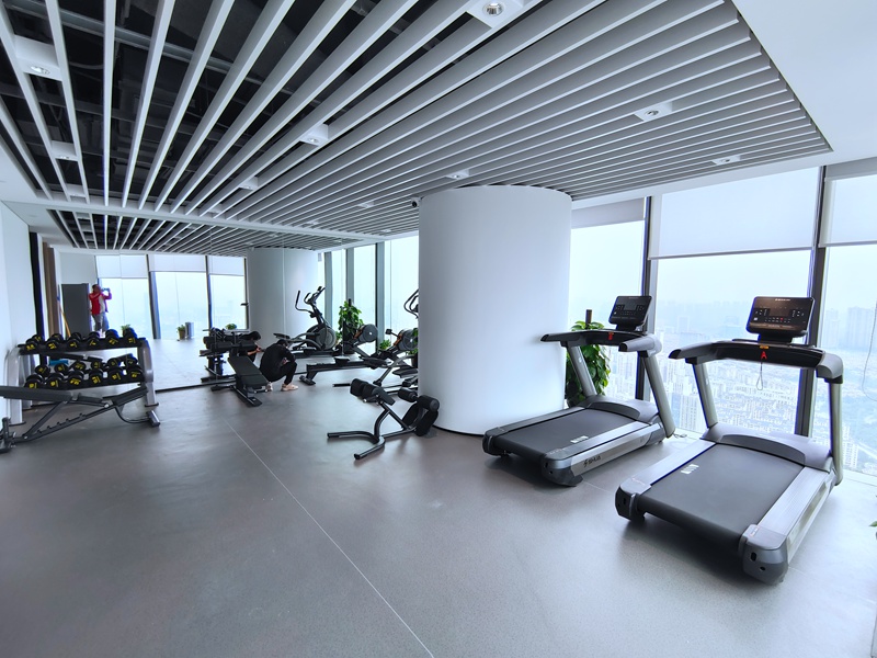 有氧器械配置了好博V9智能跑步机,X5-E椭圆机,商用划船器SH-R8100。有氧运动可以增强心肺功能,提高身体代谢率,消耗体内多余脂肪。新V9商用跑步机具有坡度缓降功能,有助于肌肉与心血管训练,同时具有心率控制功能,随时监测心率,增强跑步体验感。X5-E椭圆机的生物力学设计,通过不受地面冲击的全身运动,能够进行高强度的有氧运动训练,更好的减轻疲劳感且不会对关节产生压力,保护膝关节的同时实现全身性的锻炼。