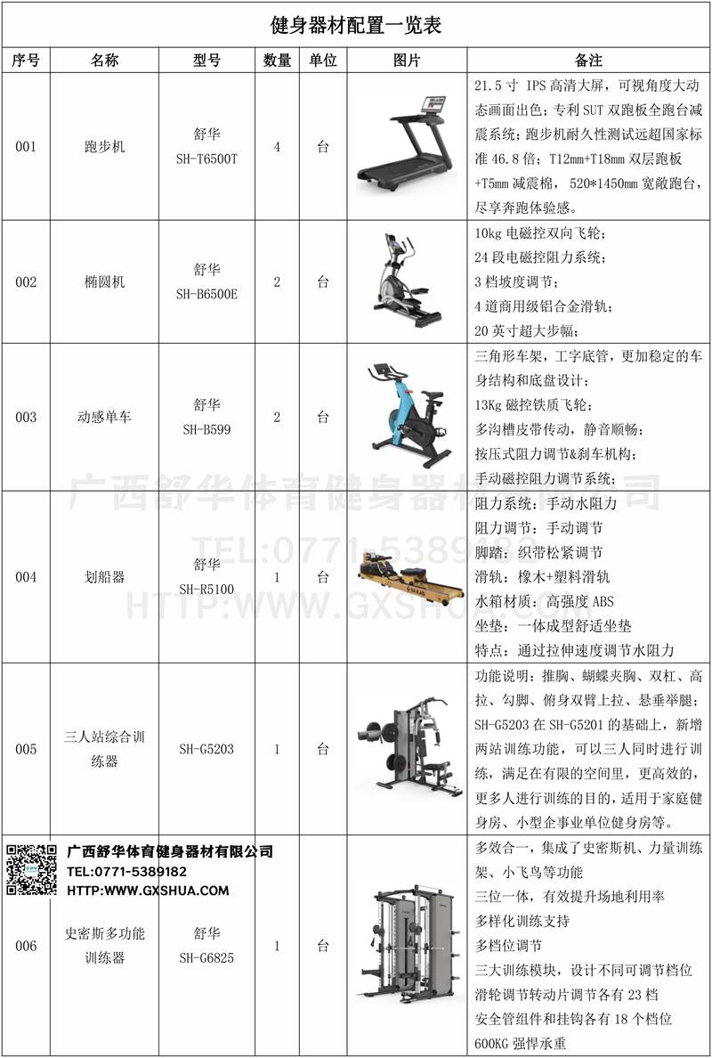 1.好博X5 PRO高端跑步机SH-T6500T*4台-经典时尚造型配色,简约Z字车架造型,融合各种家居风格,彰显奢华运动质感;21.5英寸高清触控屏-传承动感美学,成就时代典型之作全新升级V3.0系统,支持系统在线升级,极大提升用户交互体验;专利减震跑台-采用SUT双层跑板、全跑台减震系统,且该减震科技获得国家专利,有效减少关节冲击,52cm宽跑台搭配精抽雏形滚筒,稳固不位移;F级马达动力强劲-5.0HP峰值马达,2.5HP持续输出,0~15%坡度调节,最高18km/h时速,胜任不同类型训练;内置9种运动程序,支持场景跑、在线约跑、一键体育考试。不仅可以跑步,还能实时记录运动数据,探索丰富健身课程,边学边跑,拓展运动边界,尽享奔跑体验感。
