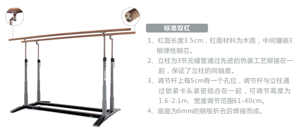 杠面长度3.5cm,杠面材料为木质,中间镶嵌3根弹性钢芯。