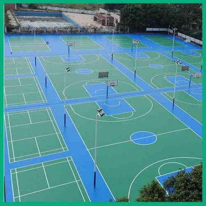 丙烯酸球场材料是不含石棉、铅或水银等化合物的产品,完全绿色环保,高度抗紫外光性能,颜色持久深入,不褪色,不脱落。保养容易,维护费用低,在任何气候条件下都坚固耐用。