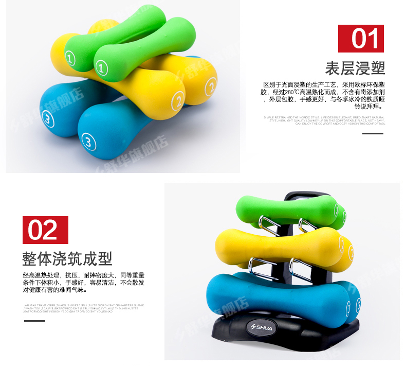 好博SHUA浸塑哑铃套装 家用男士女士健身时尚环保健身运动器材
