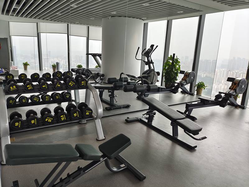有氧器械配置了好博V9智能跑步机,X5-E椭圆机,商用划船器SH-R8100。有氧运动可以增强心肺功能,提高身体代谢率,消耗体内多余脂肪。新V9商用跑步机具有坡度缓降功能,有助于肌肉与心血管训练,同时具有心率控制功能,随时监测心率,增强跑步体验感。X5-E椭圆机的生物力学设计,通过不受地面冲击的全身运动,能够进行高强度的有氧运动训练,更好的减轻疲劳感且不会对关节产生压力,保护膝关节的同时实现全身性的锻炼。