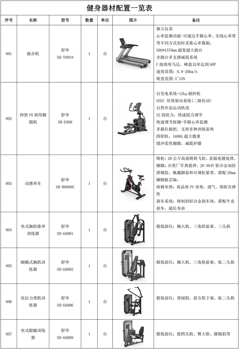 1.好博V9智能跑步机SH-T8919*5台-独立仪表-简洁大气,全新外观设计,健康运动新选择;心率监测功能,可通过手握心率、无线心率带等不同方式实时采集心率数据;580*1570mm超宽超大跑台-跑感舒适,跑台整体安全稳定;全跑台多支撑减震平台,保证跑台超强支撑力,达到180kg支撑,满足专业健身房需求。F级商用马达-超强马达,AC 3.0HP 交流,峰值功率达到6HP,F级商用品质。速度范围达到0.8-20km/h;V9跑步机可实现跑台扬升功能,坡度范围-3~15%,满足客户不同的锻炼需求。