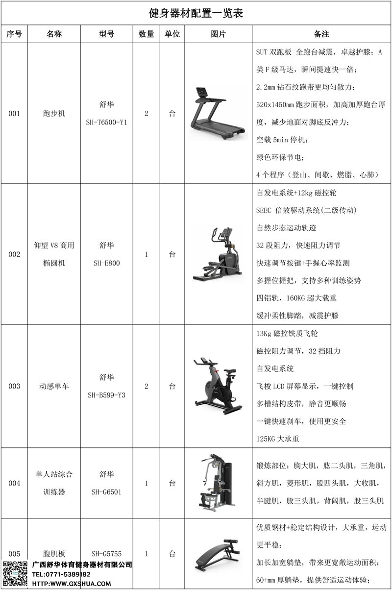 1.好博X5智能跑步机SH-T6500*2台-新X5拥有740mm的宽敞跑台,520mm宽跑带,跑步时更畅快无拘束。搭载SUT全跑台减震系统,针对跑步冲击区进行前、中、后以及双侧全方面避震,有效分散跑步时对跑者膝盖和踝关节的冲击,跑步也能更护膝。采用T18MM跑板+5MM减震棉+T12MM双层专利跑板减震结构设计的韧性跑板,承重力强,回弹舒适,带来缓震护足的舒适跑步体验。搭载了一颗持续马力2.5HP,峰值马力5.0HP的强劲动力马达,能为跑步提供源源不断的动力,让跑步流畅不卡顿。跑步机的速度可达18km/h,能够满足更专业的跑步锻炼需求。拥有15段的电动坡度扬升功能,让跑步不至于平地跑,更具挑战性。跑步时,实时了解并控制心率,能让运动更加高效。X5跑步机搭载手握心率检测系统,同时还支持心率臂带和心率胸带的连接,能满足不同类型用户的选择使用需求。