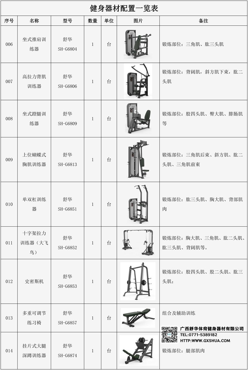 11.好博十字架拉力训练器(大飞鸟)SH-G6852*1台-锻炼部位:胸大肌、三角肌、肱二头肌、肱三头肌、背阔肌等,双滑轮的设计可以实现多角度的训练,增加了训练的多样性和全面性。用户可以通过调节滑轮的位置和角度,针对不同的肌肉群进行有针对性的训练,如胸大肌、三角肌、肱二头肌、肱三头肌、背阔肌等。配重为铸铁材质,达到93kg,并且分为两组,每组93kg,最小配重为5kg。这种充足的配重范围可以满足不同训练水平和强度需求的用户,无论是初学者还是专业健身人士,都能找到适合自己的训练重量。其高品质的设计和性能使其非常适合商业健身房使用,能够满足健身房中大量用户的高强度训练需求,同时也能够经受住长时间的使用和频繁的操作。