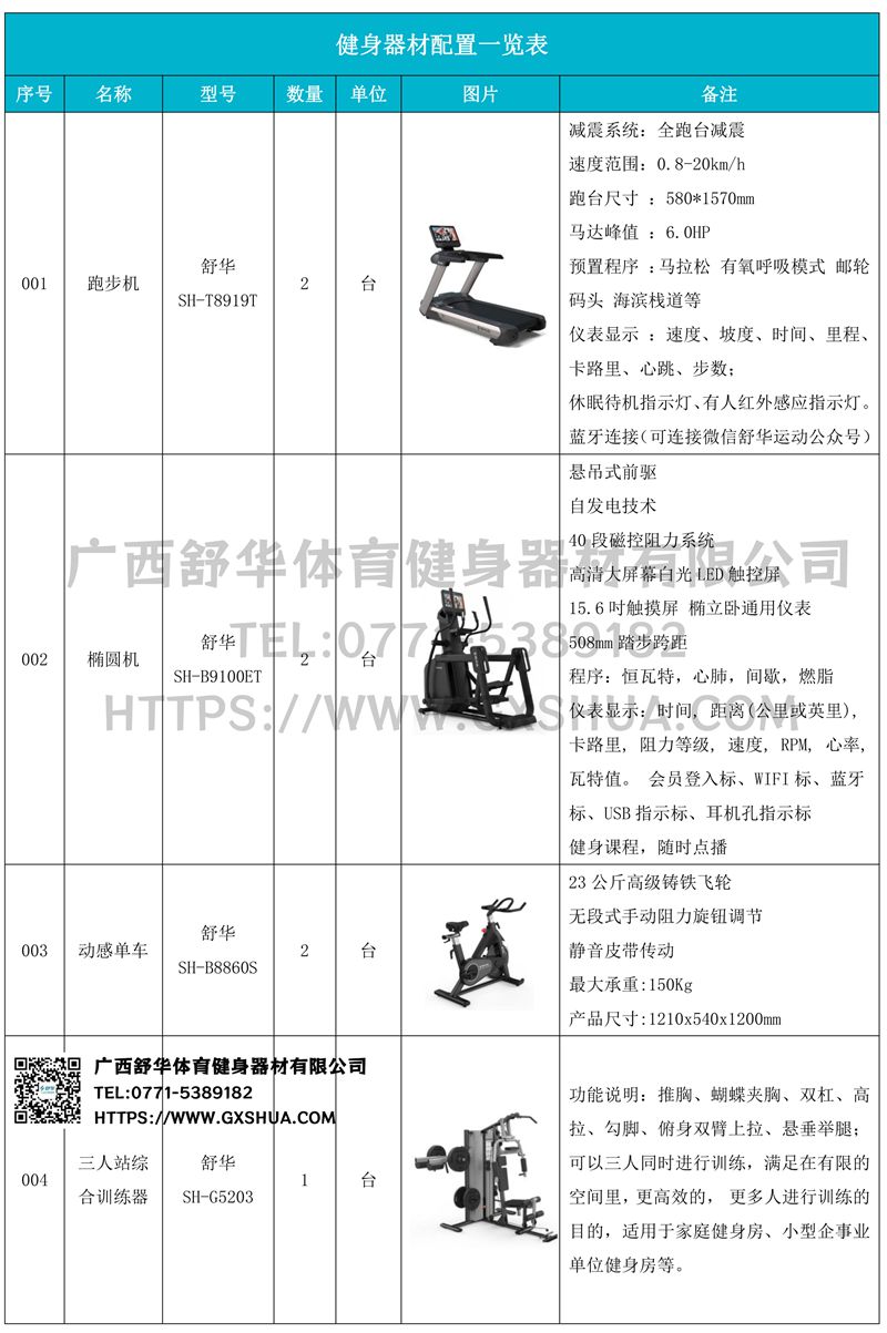1.好博V9跑步机SH-T8919T*2台-V9+采用全跑台减震设计,为跑者提供舒适的落脚地感和稳定的跑步支撑,良好的缓冲防护,降低膝关节受伤风险。商用大跑台,为跑者提供从容奔跑空间,180kg承载力,580*1570纯跑台面积,满足专业健身需求。V9+采用F级商用马达,6HP峰值马力,20km/h最高速度,提供源源不断的动力。V9+内置健身直播软件,每周提供直播课程,内含大量专业线上健身点播课程,可为健身房不同人群提供多样化健身课程服务。