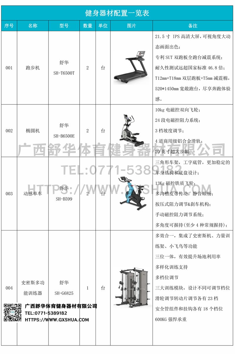 1.好博X5 Pro跑步机SH-T6500T*2台-采用高性能电机,提供稳定动力,支持长时间高强度运行,适合长时间有氧训练,跑台宽敞,提供舒适跑步空间,减少运动中的束缚感,适合不同体型用户。配备先进减震系统,有效缓解跑步对关节的冲击,降低运动损伤风险,内置智能控制系统,支持多种预设程序和个性化训练计划,用户可根据需求调整速度和坡度,满足多样化训练。