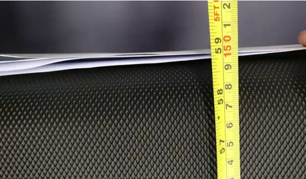 实测跑带的厚度为2.25mm,即便用美工刀不断割滑,也毫无划痕,说明好博这款跑步机跑带还是相对比较坚固度的,不会很容易断裂和磨平。